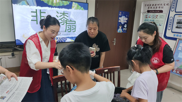 7月10日,我校学生工作部钟晓滢、焦庆超、倪晨三位老师为万科社区的小朋友们带来一场以“体悟漆扇之美,传承非遗技艺”为主题的社区公开课。