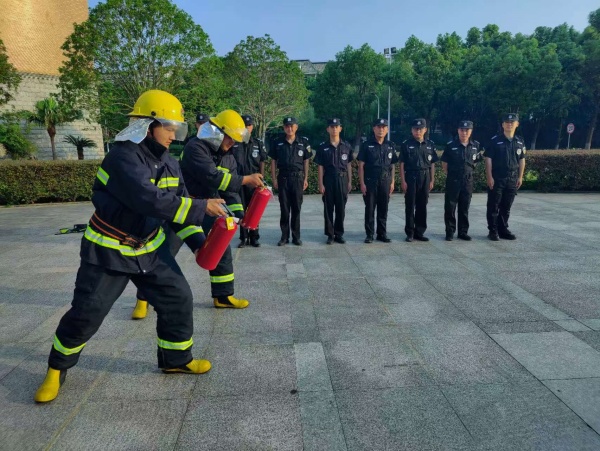 理论与实践并重。在消防训练环节,学校保卫处治安科科长邓友君同志授课。结合校园实际情况,深入浅出地讲解了火灾的成因、预防措施以及初期火灾的扑救方法。同时,还现场演示了各类灭火器材的正确使用方法、消防控制柜的功能和操作、消防器材的使用、日常防火巡查的范围和内容等并指导保安员们进行实操练习。通过理论与实践相结合的方式,保安员们的消防知识和技能得到了显著提升。