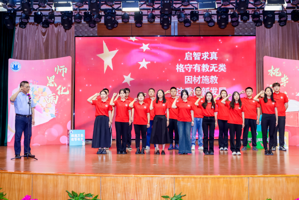 在副校长严玉康带领下,全体新教工完成了庄严的入职宣誓。