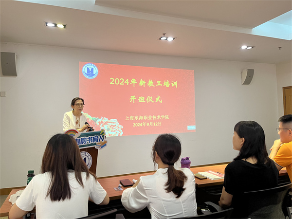 仪式开始,曹蓉蓉代表学校对新教工表示欢迎,并对新教师如何成为一名合格的职业教育教师给出了具体建议。她指出,教师不仅要具备扎实的专业知识,更要提高政治站位,牢记教育使命,提高整体素养;教师要坚持以立德树人为根本任务,坚守职业道德高线要求,要从东海学院30年奋斗史中汲取智慧和力量,学习东海老前辈们的优秀品质,不忘初心,潜心教书育人。她希望新教师能够尽快适应新身份,完成从关注自己到关注学生、再到关注课堂的转变。她鼓励新教师把个人的发展与学校的发展结合起来,在个人专业成长的同时,为学校发展贡献力量。
