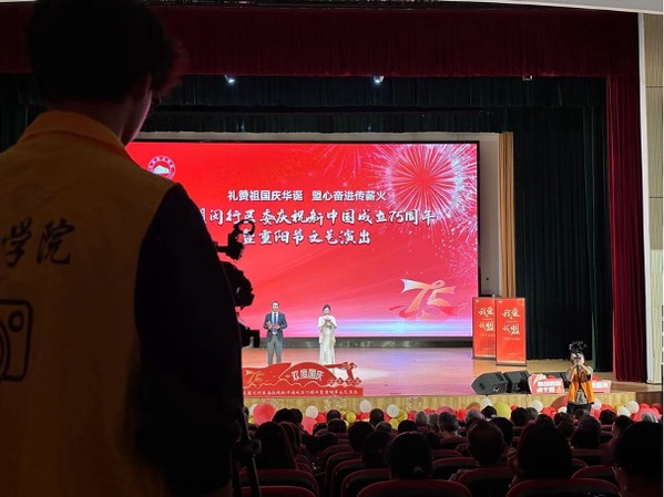 七十五载风雨兼程,屹立崔嵬;七十五载春华秋实,岁月如歌。值此金秋时节,万里河山在这丹桂飘香中愈显壮丽。在这家国同庆的日子里,传媒学院受邀记录一场意义非凡的文化盛宴——民盟闵行区委庆祝新中国成立75周年暨重阳节文艺演出。