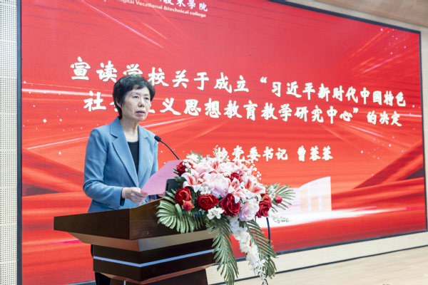 党委书记曹蓉蓉在会上致辞,并宣读了学校关于成立习近平新时代中国特色社会主义思想教育教学研究中心的决定。曹蓉蓉指出,成立研究中心,是学校落实立德树人根本任务的重要举措;是学校提高教学质量的重要抓手;是学校马克思主义学院“攻坚提质”的重要工作内容。未来,研究中心将做好以下三个方面的工作:一是以理论武装头脑为主线,开展理论教育的教学实践研究;二是以育人问题为导向,开展党的创新理论教育的实务研究;三是以大思政格局为视角,开展东海学院教师队伍建设研究。