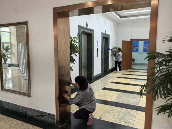 2024年11月15日上午,上海东海职业技术学院后勤保卫处物业公司组织保洁人员进行了一次大扫除,此次大扫除的主要内容是对东海源大厅及地下车库进行了一次深度保洁工作,要求保洁人员严格按照操作流程进行保洁工作,由物业公司经理及主管进行现场监督指导。活动结束后物业经理对活动进行了总结和评价,同时要求保洁团队进行自我评价和分析,相互交流作业体会及经验,从而提升自己的专业能力。