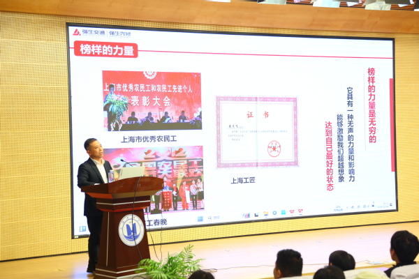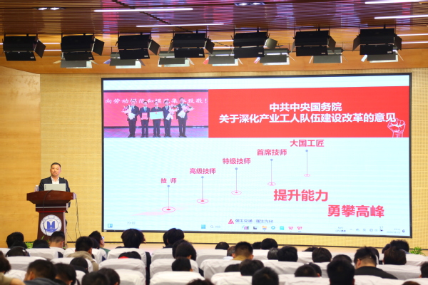 花茂飞向同学们分享了自己的追梦之路,他从榜样的力量、好习惯的养成等角度,结合自身的成长经历,讲述自己在工作中克服困难与挑战的过程,鼓励同学们要有仰望星空的勇气、要有脚踏实地的干劲、要有健康的身心体魄,希望同学们传承工匠精神,立德精技,干一行、爱一行、钻一行,传承梦想,争做时代新匠人!