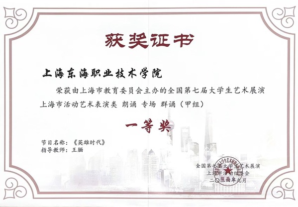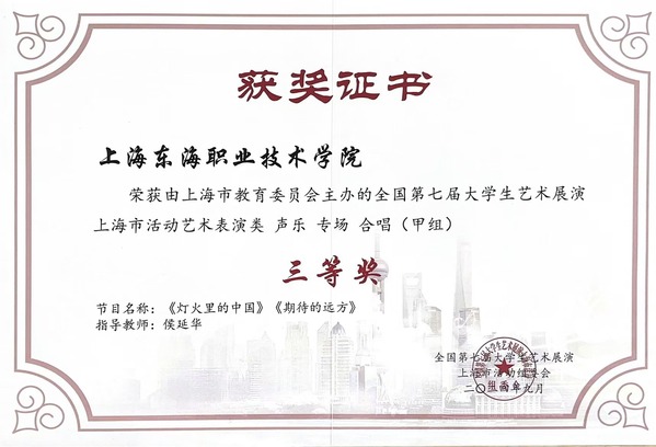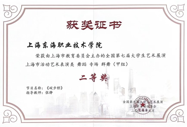 6月12日,由上海市教育委员会主办的全国第七届大学生艺术展演上海市活动获奖名单公布。经上海市展演评比,我校报送的作品获一等奖2项、二等奖4项、三等奖1项。