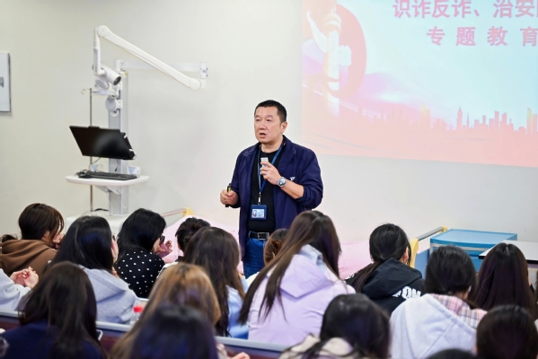 张政军以近期高校高发的诈骗案例为切入点,用“数据+实例”的形式直观展现当前校园安全形势。他指出,护理专业同学未来实习场景多、接触社会面广,更需强化安全意识,尤其要警惕针对大学生的典型诈骗手段。结合真实案例,张政军细致拆解了“校园贷”“刷单返利”“冒充老师收取费用”“虚假实习招聘”四类高频诈骗套路,特别强调“凡是要求转账汇款的都是诈骗”“凡是承诺高收益的都是陷阱”,用通俗易懂的口诀帮助新生快速识别风险。