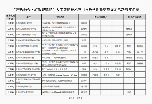 此次获奖不仅是对教师们辛勤付出的肯定,也是东海学院教育学院持续推进教学改革、加强“双师型”教师队伍建设的重要体现。通过参赛,教师们进一步拓展了教学视野,增强了将人工智能、大数据等技术融入教育的信心与能力。学校也将以此次成绩为动力,持续推动人工智能与教育专业的深度融合,优化课程体系、强化实践教学,不断提升人才培养质量,为培养适应数智时代发展的高素质技术技能型教育人才贡献力量。(通讯员 王婷玉)