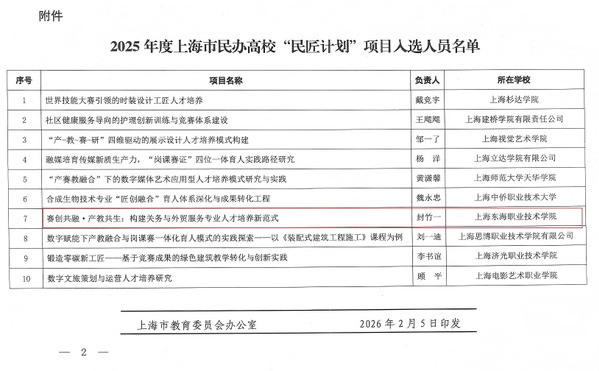 日前,上海市教育委员会公布了2025年度上海市民办高校“民匠计划”项目入选人员名单,我校经管学院教师封竹一成功入选。