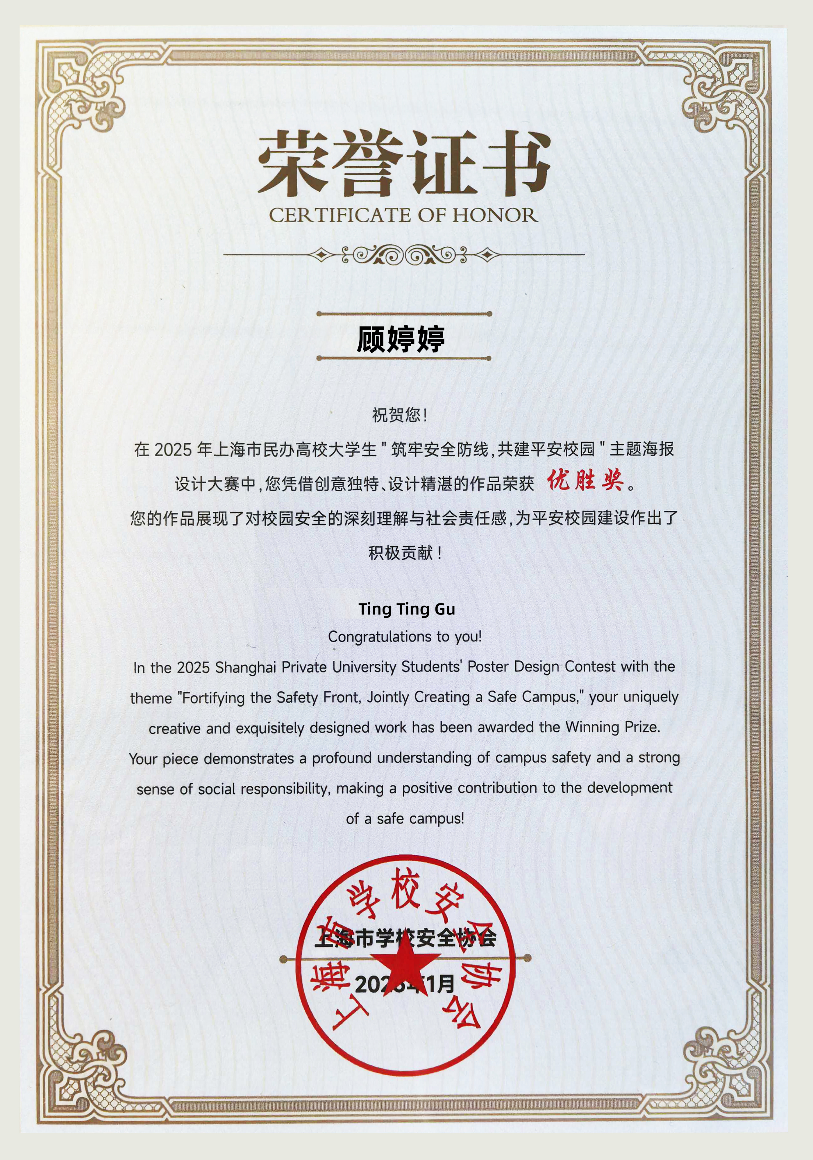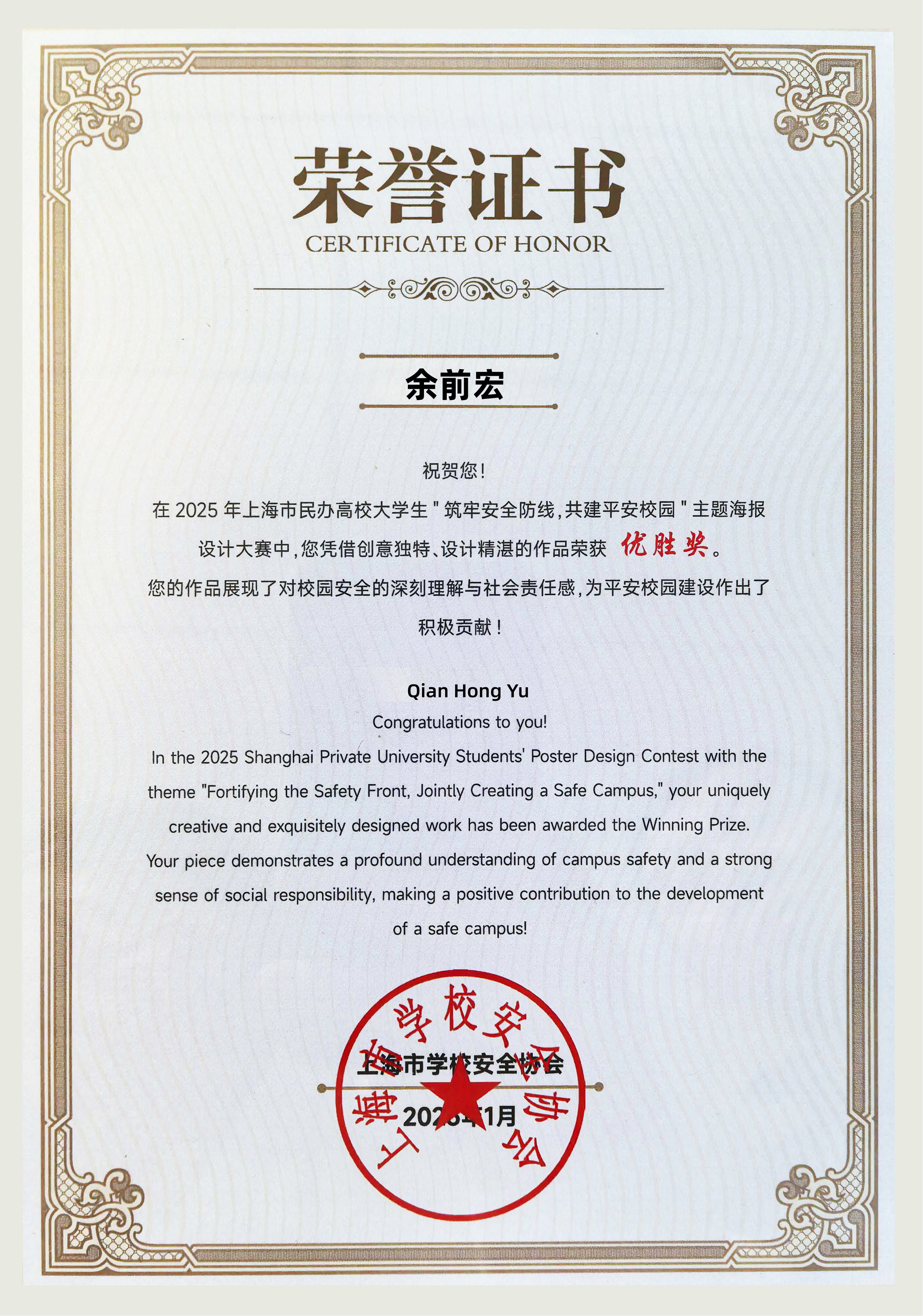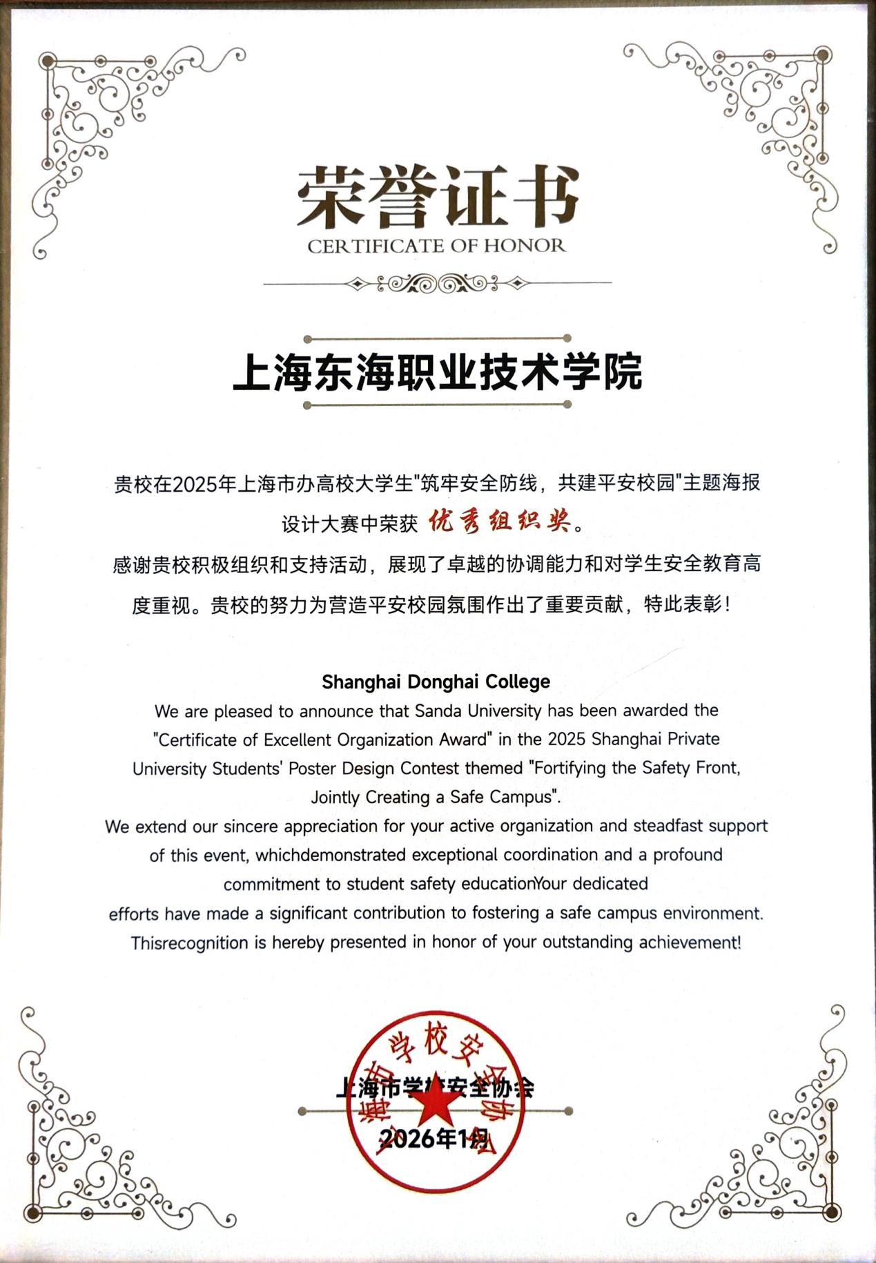 为深入贯彻落实总体国家安全观,创新校园安全教育形式,推动安全理念与美育教育深度融合,上海市学校安全协会组织开展了上海市民办高校大学生“筑牢安全意识,共建平安校园”主题海报设计大赛。