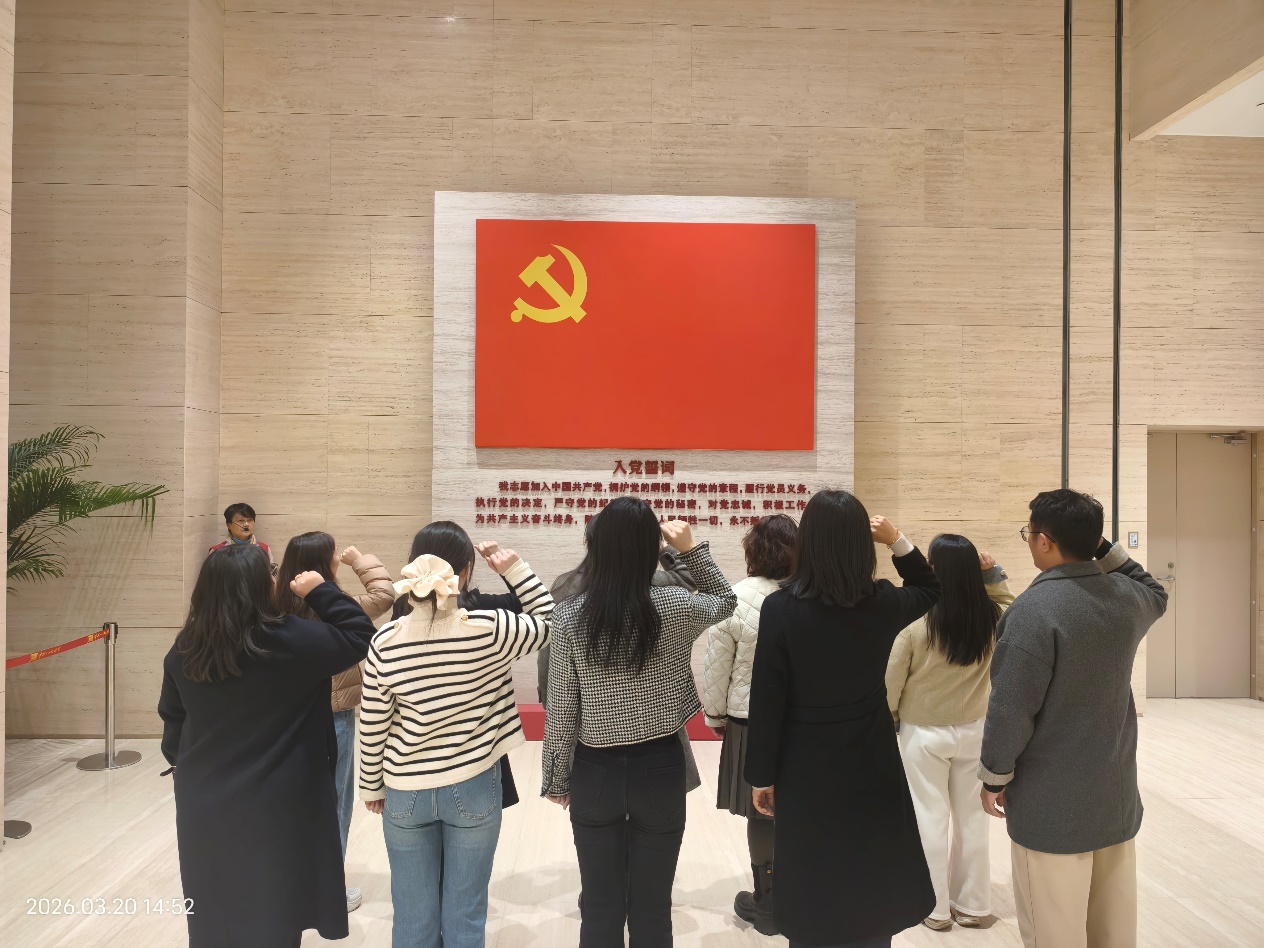 参观学习结束后,全体党员面向鲜红的党旗庄严列队,高举右拳重温入党誓词。“我志愿加入中国共产党,拥护党的纲领,遵守党的章程……”铿锵有力的誓言回荡在现场,字字千钧、句句铭心,既是对革命先辈的深切缅怀,也是对践行正确政绩观的庄严承诺。通过重温誓词,全体党员进一步强化党性修养、筑牢思想根基,更加坚定了以党性立身做事、以正确政绩观校准行动的决心,切实把红色研学的感悟转化为履职尽责、担当作为的强大动力。