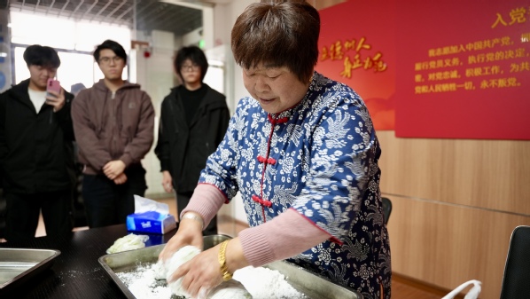 活动结束后,几位同学分享了他们的感受:“胖阿姨教我们的时候特别认真,她的手特别稳。她说‘每一次都要像第一次一样认真’,这句话我记住了。”“以前只知道吃青团,今天才知道一只青团背后有这么多故事。麻花郎是什么、怎么做、为什么要坚持,胖阿姨讲得特别清楚,也特别真诚。”“我是传媒学院的学生,今天既学会了做青团,也拍了很多素材。胖阿姨揉面的那个特写,我拍了好几张,特别有力量感。”“以前觉得劳模离我很远,非遗也离我很远。今天发现,劳模就在我们身边,还让我们叫她‘胖阿姨’。她手上那股认真劲儿,我会一直记得。”