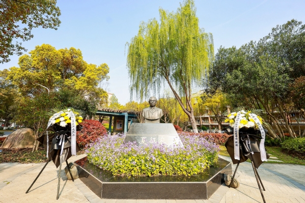 教育学院院长许铁梅表示,夏老曾自题“半是战士半书生,一行政治一行诗”,这正是他一生最生动的写照。他是忠诚的战士:1926年入党,1927年参加南昌起义,历经皖南事变、牢狱磨难,始终坚守信仰,为民族解放与革命事业出生入死,是久经考验的共产主义战士。他亦是风骨的书生:以笔为枪投身左翼文学,晚年以百岁高龄主编《辞海》,深耕教育与文化,用学识与担当泽被后世。站在铜像前,仿佛看见他戎马倥偬、笔耕不辍的身影。作为老教师,我们更应传承他“战士”的坚定与“书生”的赤诚,将革命精神融入教书育人,坚守讲台、潜心育人,让夏老的精神在校园代代相传。先辈精神永不忘,育人使命记心间。今后,我们将继续传承和弘扬夏老的崇高精神,不忘初心、恪尽职守,把对夏老的缅怀与敬仰,化作教书育人的动力,用心培育一代又一代学子,为学校发展、为教育事业贡献全部力量,让夏老的精神在校园里代代相传。