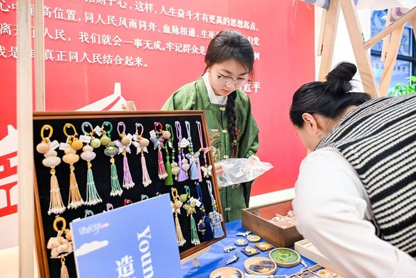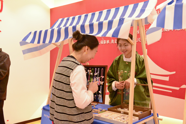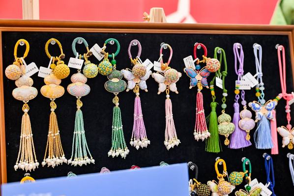 魏亿婷同学表示,此次活动中,我展出了掐丝珐琅杯垫、胸针,还有宋锦发卡、挂件等各类非遗文创作品。在为往来市民介绍、讲解的过程中,我真切感受到了大家对传统手工艺的喜爱与认可。每一次驻足询问、每一句真诚夸赞,都让我倍感温暖。这场活动让我深深体会到:掐丝珐琅之美,从来不是束之高阁的,它完全可以融入日常、贴近生活。作为传媒学院的学生,我们有能力也有责任,用自己的方式让传统工艺被更多人看见、理解与喜爱。未来,我会继续坚守传承初心,打磨掐丝珐琅技艺,用更多有温度的作品,让这项古老工艺在新时代焕发全新活力。